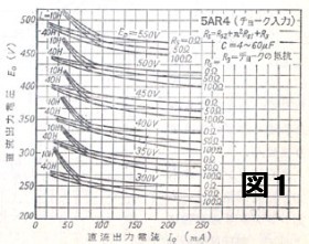 電源供給はゼロ信号時から最大出力時電流変化の大きいEL34のプレートにはシリコンダイオード整流より供給され、スクリーン及び電圧増幅部には整流管整流によるチョークインプット式の安定した電源供給とします、チョークインプット方式は図1の通りチョークのインダクタンスと電流には密接な関係があり、ある一定以上の電流を流す事で初めて安定いたします、この電流値を臨界電流と言います。
