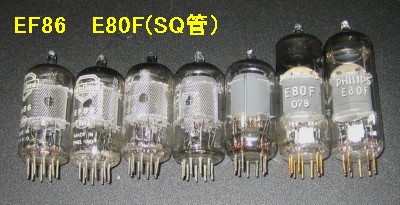 左よりムラード×3、国産の松下、NEC、(国産名は6267)、EF86のSQ管(スペシャルクォリティ)で