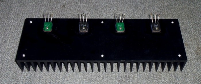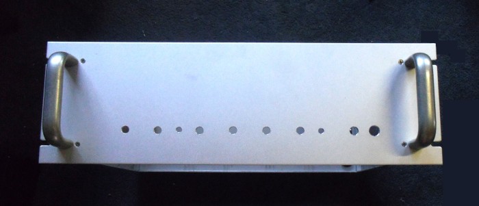 大型放熱板に取り付けしたMos-FET、 全体のケースは19インチラックマウント3U型とし、大型のキャリングハンドルを装備です。