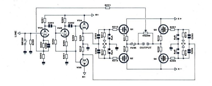 電圧→電力の変換器です、半導体使用はこの部分のみで電圧増幅は総て真空管で行います。