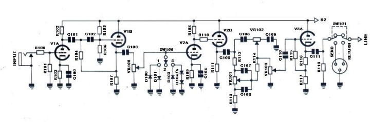 マスターボリュームの後ろにはカソードフォロアーのバッファーを設けておきます、キャノンコネクターは SEND/RETERN です、